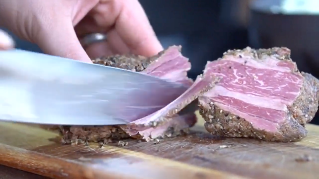 3. Pastrami in Scheiben schneiden.